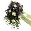 Blumen zur Beerdigung in Weiß Blau Bordeaux mit Schleifenbändern