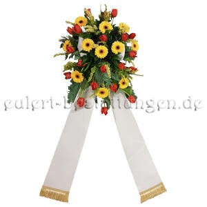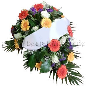 Schreiben Sie die erste Bewertung für „Buntes Trauergesteck mit Gerbera und Schleifenband“