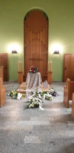 Als Bestatter in Berlin-Buch führten wir diese Urnenbestattung auf dem landeseigenen Friedhof XII mit unserem Team der Eulert-Bestattungen durch. In der Kapelle wurde für die Abschiednahme die dunkelgrüne Schmuckurne mit einem goldenen Schwalbenmotiv zusammen mit einem hübschen Blumengesteck aufgestellt. Dort fand die Trauerfeier statt, bei der eine Rednerin die versammelten Trauergäste in einfühlsamen Worten an die Verstorbene erinnerte. Die musikalische Begleitung erfolgte von CD. Anschließend wurde der Beisatz auf einer Partnergrabstelle vollzogen.